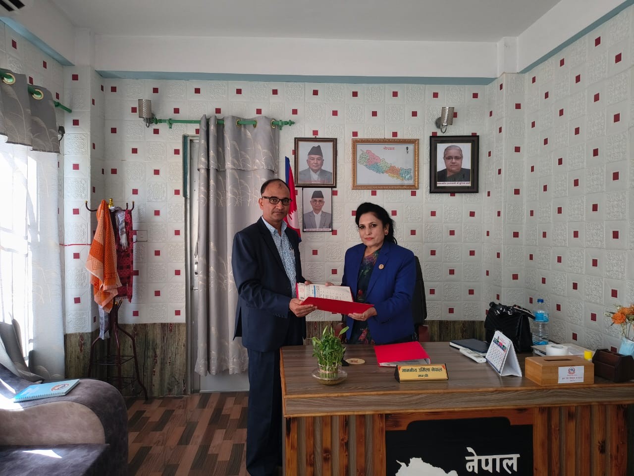 मा.मन्त्री उर्मिला नेपालज्यू र श्रीमान् सचिव वलराम ढकालज्यू बीच कार्यसम्पादन सम्झौता गर्नु हुँदै ।